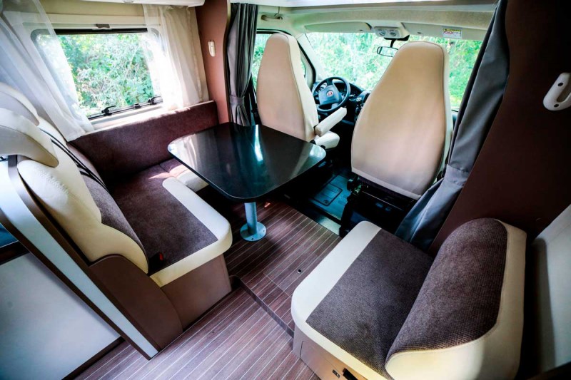 La nueva autocaravana modelo Ocean 525 tiene una cómoda cama matrimonial doble trasera. Destaca por sus líneas elegantes e interiores muy espaciosos. El vehículo está equipado con 5 asientos homologados y 5 plazas para dormir. La puerta de separación divide la zona de dormitorio de la zona de estar y garantiza la máxima privacidad. El baño y la ducha están separados. Blucamp Ocean 525 es la opción ideal para quien busca el máximo confort y habitabilidad.
